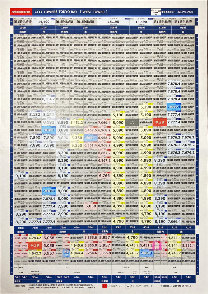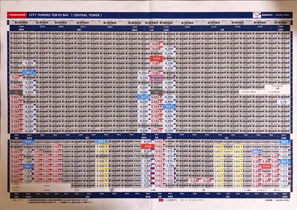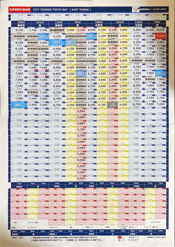 シティタワーズ東京ベイ 2019年時の新築価格表