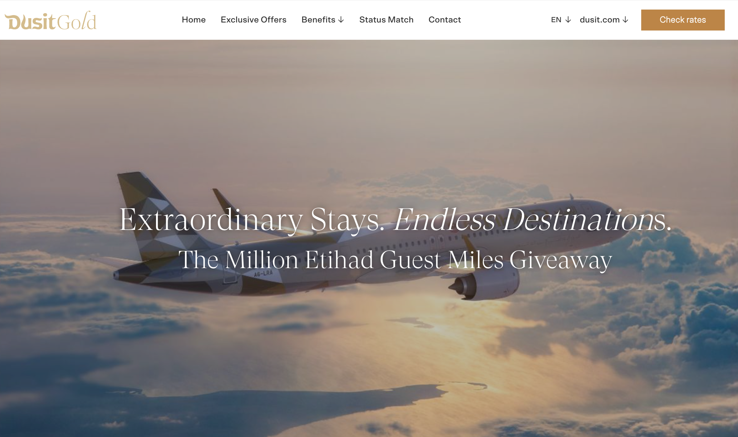 Extraordinary Stays. Endless Destinations. 1,000,000 Etihad Miles Giveaway - Dusit Gold