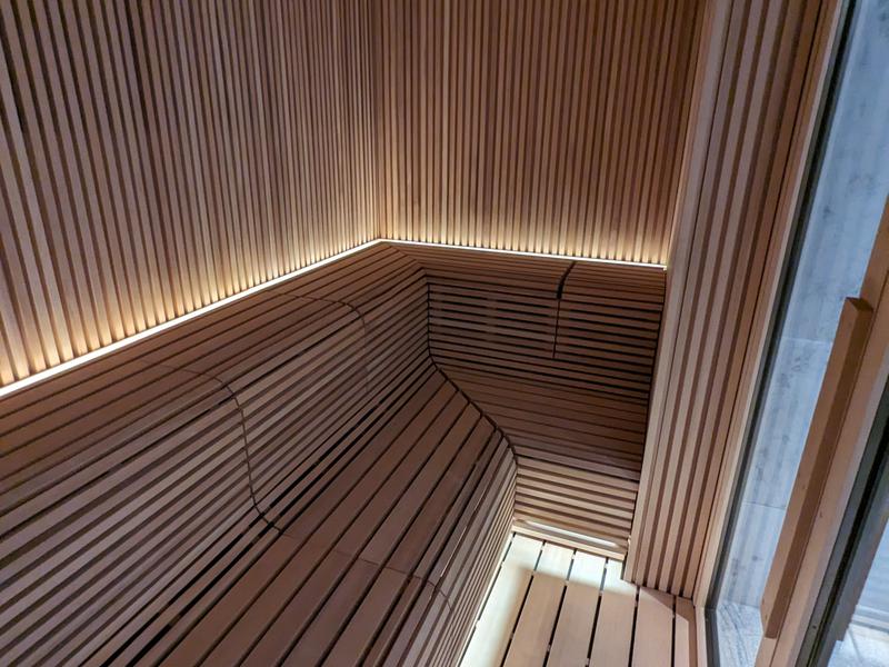 サウナイキタイによるとこのサウナの室温は84度だそうです。6人ほどが座れる小さめのサウナですが、新しい施設ということもあってか清潔感のある状態です。